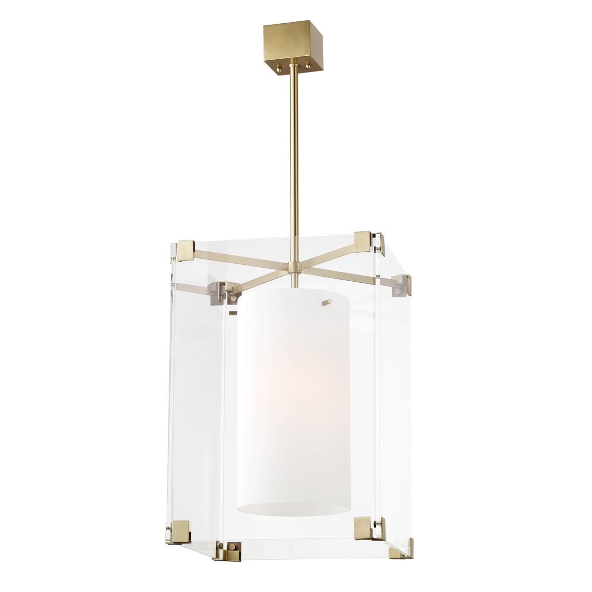 We have a weakness for acrylic—call it our Achilles’ heel. Taking inspiration from a genius piece by a French designer of the fifties, we swapped out the original’s green glass for transparent acrylic. The opal matte diffuser is a smooth cylinder suspended on three pins. Sure to inspire Lucite lust in even the most dedicated traditionalist, Achilles is a beautiful piece, stunning with brass accents, effortlessly cool with nickel.