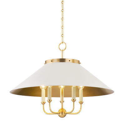 What began as a chandelier is now an entire family of Clivedon fixtures. Featuring sharp tapered shades and heritage-inspired details, these are the new elevated basics for the modern home. With Aged Brass and either Soft Studio Green or Soft Crimson finish options, each shade is metal on the inside and painted on the outside. Available as a sconce with a gooseneck, a pendant in two sizes, and a 5-light chandelier, Clivedon is designed to suit a variety of room sizes and styles.
