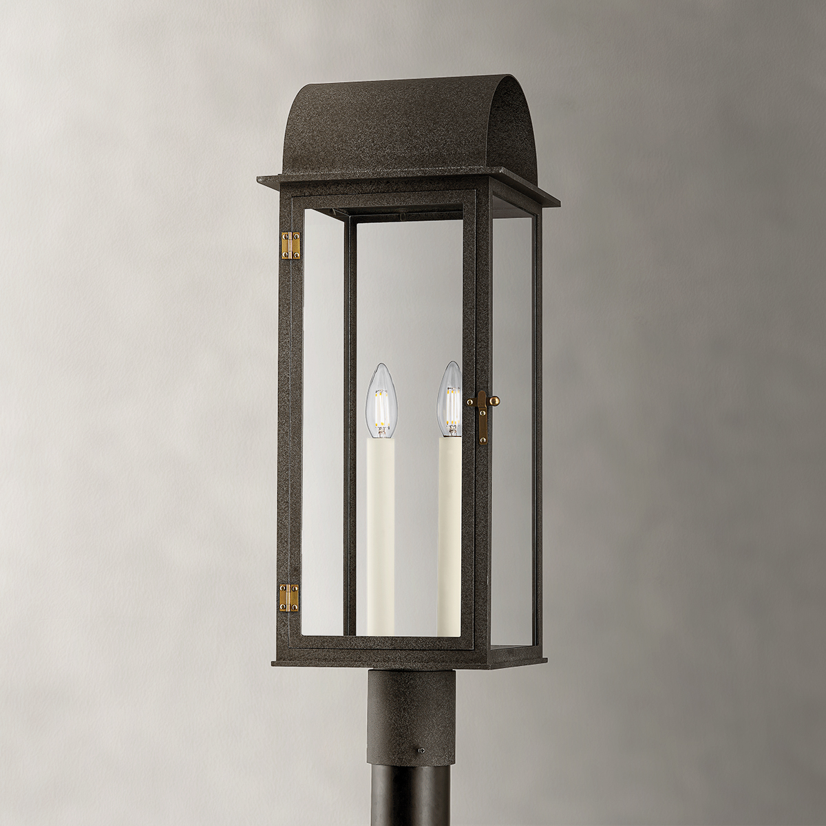 A modern reimagining of early American gas lanterns, Bohen features a sleek profile defined by clean lines and heritage details. Finished in Forged Iron with Patina Brass hardware, it has a rustic, yet refined presence that is particularly suited to traditional homes. Available in three sizes with a post, Bohen illuminates large entrances, front doors, and driveways with its timeless design.