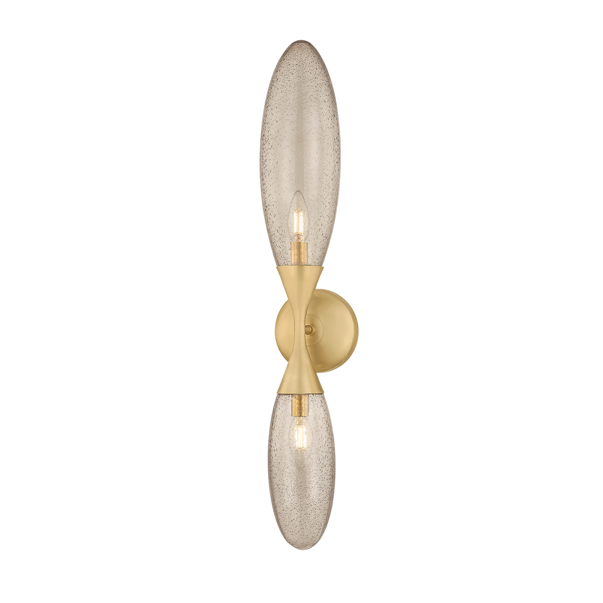 Organic forms and surprising geometry come together in the bold Sputnik-inspired design of Cordoba. This family of fixtures features an array of seedy light bronze glass shades that are light yet voluminous; organic yet refined. The Vintage Brass finish on the frame gives Cordoba a retro flair, while the futuristic shape of the glass shades adds a contemporary edge. Available as a sconce, semi-flush mount, and chandelier in two sizes, Cordoba is perfect for adding a dramatic, sculptural moment.