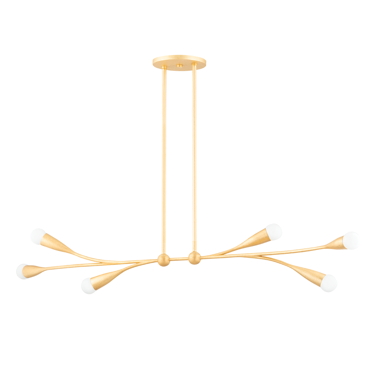 Bursting with style, Elsa draws inspiration from cherry blossom trees. Slender arms branch out from small spheres, ending in buds of petite matte white globes. This soothing, organic design is available as a wall sconce, pendant, linear, and chandelier in Gold Leaf and Textured White. For the best look, we recommend G16.5 incandescent matte white finish bulbs.<br />