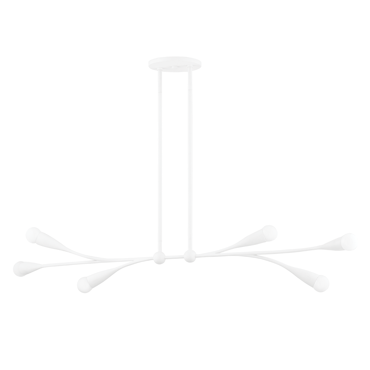 Bursting with style, Elsa draws inspiration from cherry blossom trees. Slender arms branch out from small spheres, ending in buds of petite matte white globes. This soothing, organic design is available as a wall sconce, pendant, linear, and chandelier in Gold Leaf and Textured White. For the best look, we recommend G16.5 incandescent matte white finish bulbs.<br />