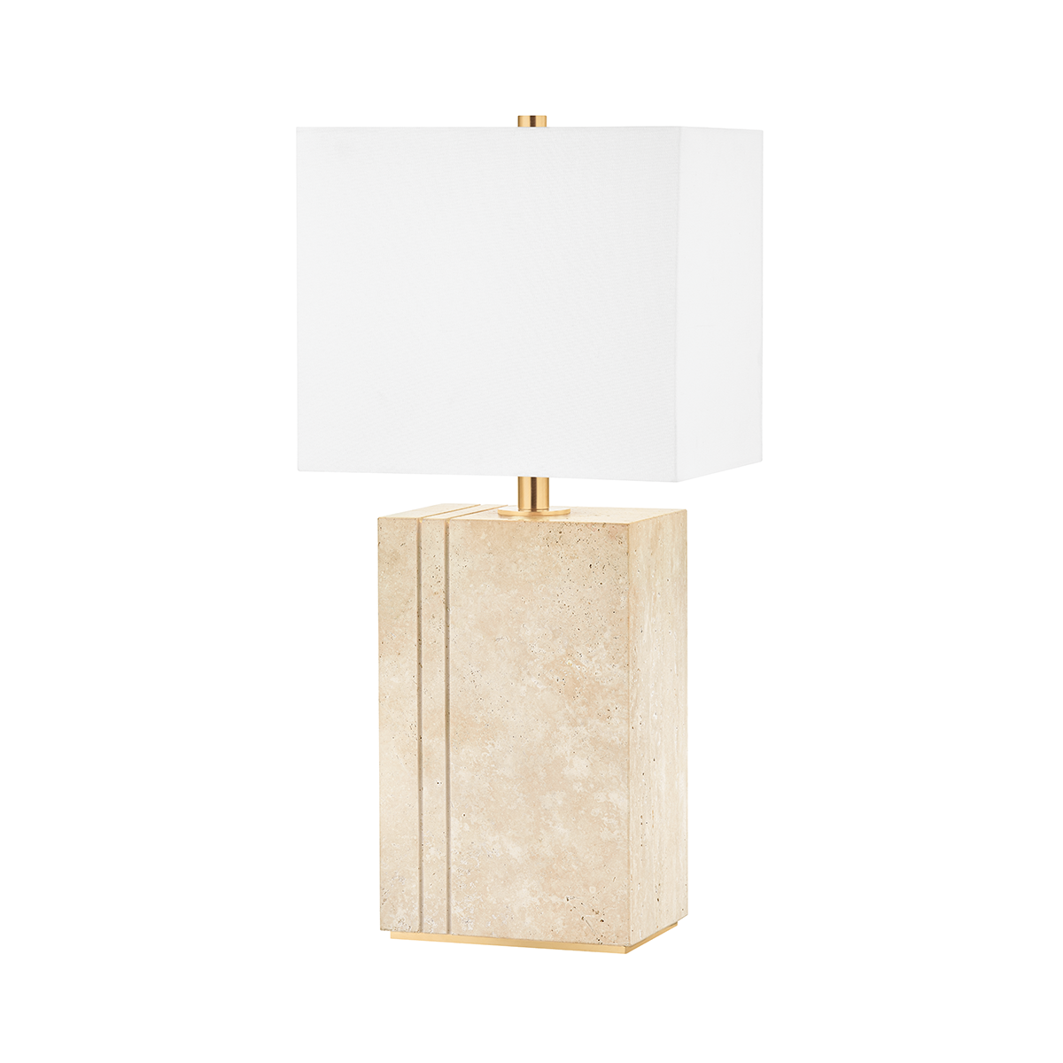 Brownsville is modern design that’s made to move. The precision cut and beautiful lines of the natural travertine base make this posh and portable table lamp stand out. Soft light filters through the Belgian linen shade and the aged brass finial adds just the slightest hint of shine. Available in two sizes to work in any space.<br />*Due to the one-of-a-kind nature of the medium, exact colors and patterns may vary slightly from the image shown.